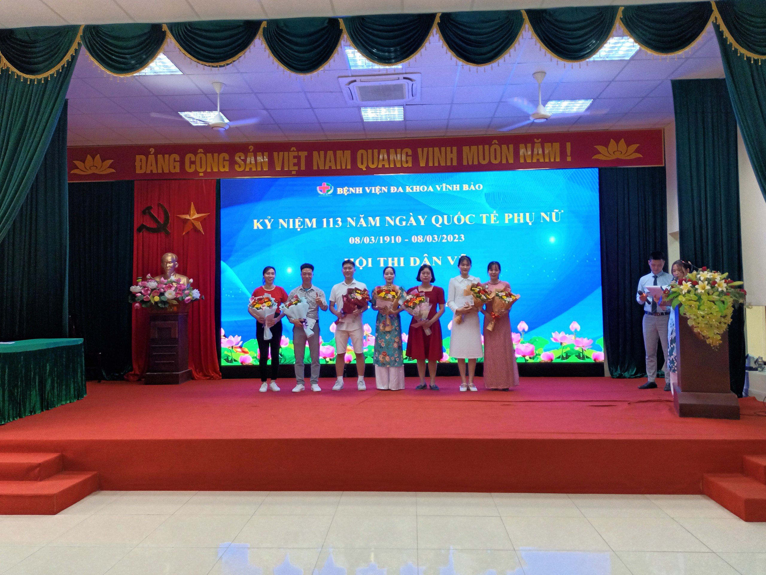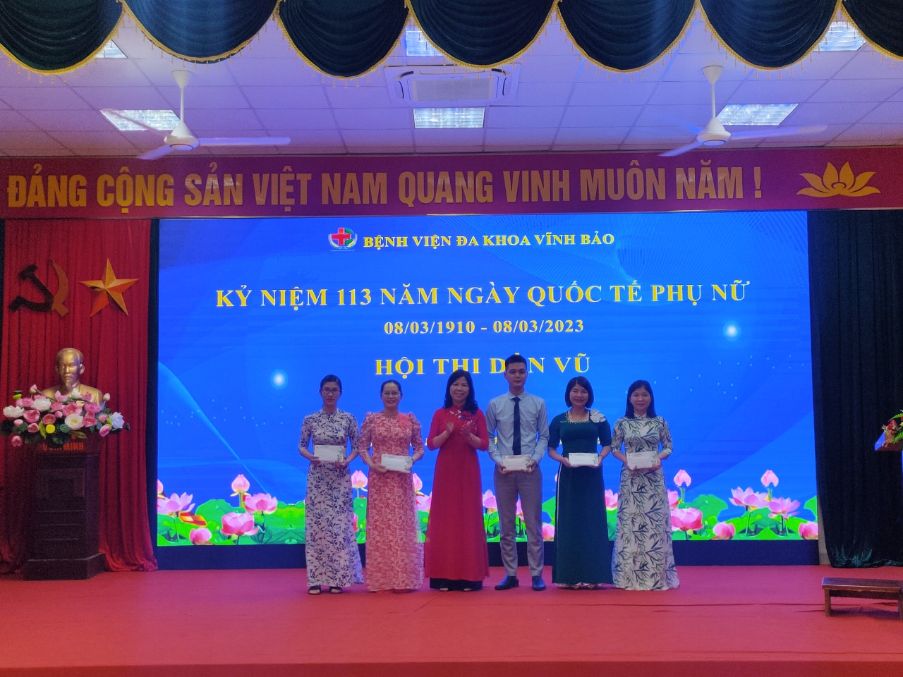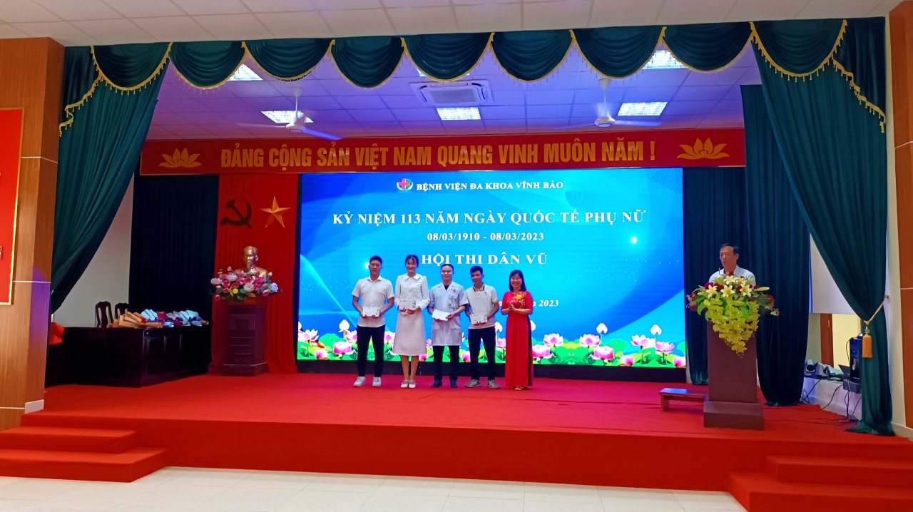 Nằm trong chuỗi hoạt động chào mừng ngày Quốc tế 8/3, Ban nữ công bệnh viện đã tổ chức Hội thi dân vũ. Tuy là năm đầu tiên bệnh viện tổ chức hội thi dân vũ, nhưng các đội thi đến từ các khoa phòng đã đem đến hội thi các tiết mục đặc sắc, sôi nổi, và đều nhận được sự hưởng ứng nhiệt tình của cán bộ nhân viên bệnh viện.Ban tổ chức đã trao giải nhất cho đội khối Phòng ban, Giải nhì cho đội Phòng khám đa khoa Vĩnh Bảo, Giải ba cho đội Nhi- Truyền Nhiễm.