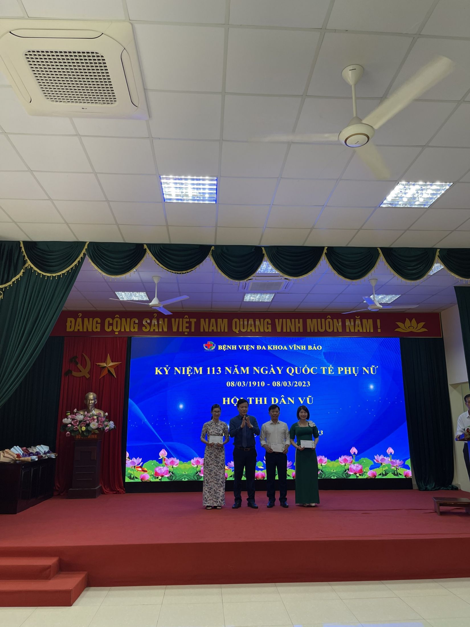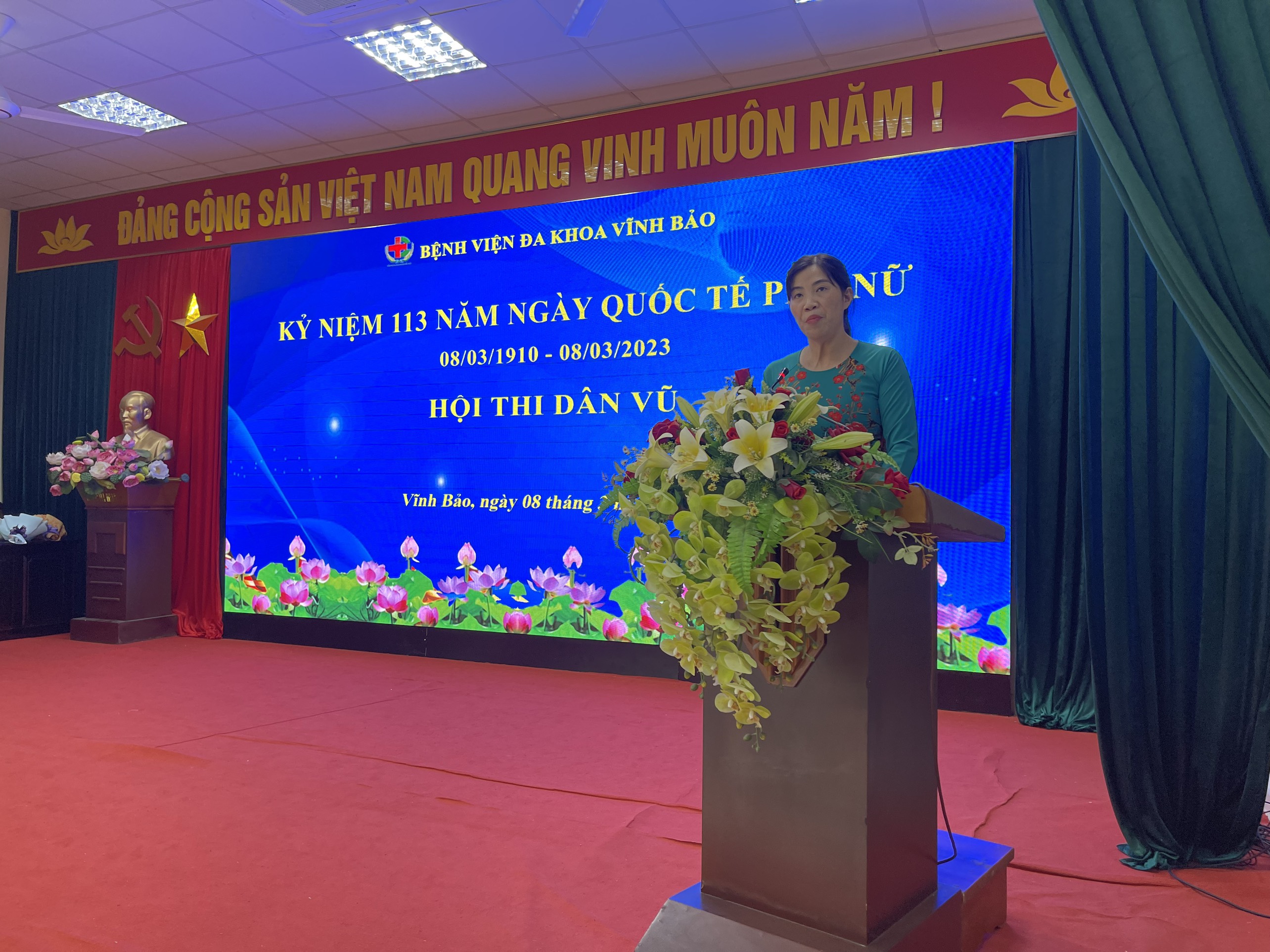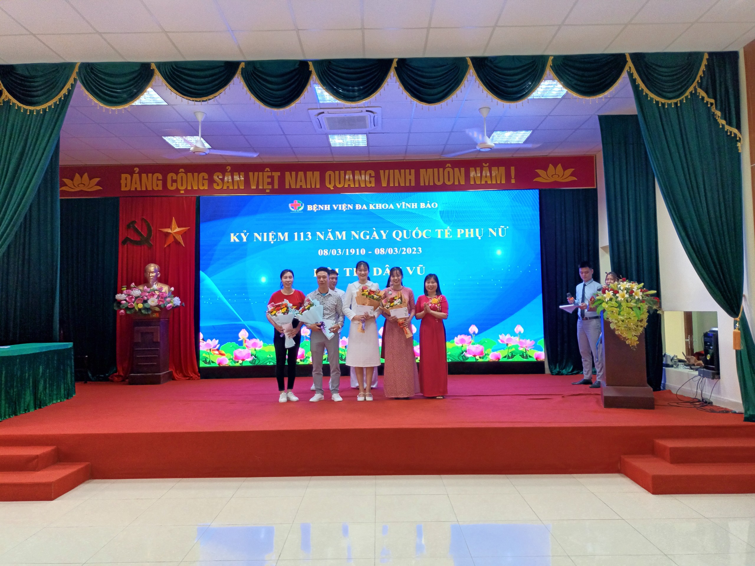 Nằm trong chuỗi hoạt động chào mừng ngày Quốc tế 8/3, Ban nữ công bệnh viện đã tổ chức Hội thi dân vũ. Tuy là năm đầu tiên bệnh viện tổ chức hội thi dân vũ, nhưng các đội thi đến từ các khoa phòng đã đem đến hội thi các tiết mục đặc sắc, sôi nổi, và đều nhận được sự hưởng ứng nhiệt tình của cán bộ nhân viên bệnh viện.Ban tổ chức đã trao giải nhất cho đội khối Phòng ban, Giải nhì cho đội Phòng khám đa khoa Vĩnh Bảo, Giải ba cho đội Nhi- Truyền Nhiễm.