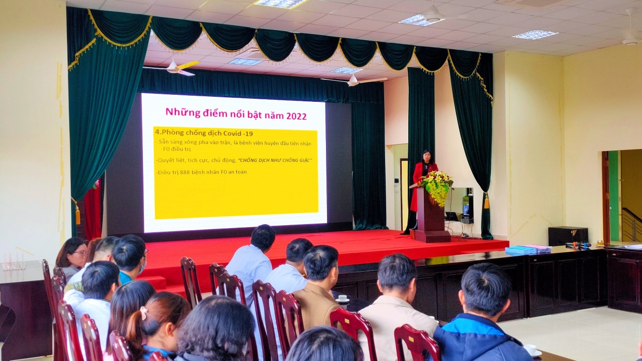 Phát biểu tổng kết hội nghị, BSCKII Lâm Thị Huyền – Bí thư Đảng ủy -Giám đốc Bệnh viện ghi nhận những đóng góp, sự nỗ lực của toàn thể CBVCNLĐ trong năm 2022. Đồng chí cũng đã đề ra những nhiệm vụ trọng tâm cần tập trung làm tốt trong năm 2023.Với phương trâm " Lấy người bệnh làm trung tâm phục vụ" bệnh viện cần đổi mới phương thức thực hiện quy chế dân chủ gắn với nhiệm vụ chuyên môn; triển khai đồng bộ công nghệ thông tin, hướng tới Bệnh viện thông minh. Cuối cùng, đồng chí mong muốn toàn thể CVVBNLĐ Bệnh viện cùng nhau đoàn kết, đổi mới sáng tạo, thay đổi phong cách thái độ phục vụ hướng tới sự hài lòng của người bệnh và hoàn thành các mục tiêu của năm 2023 mà Bệnh viện đã đặt ra.